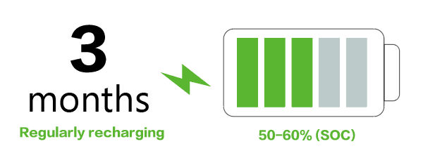 When storing the battery for a long turn. Don’t forget to charge the battery from time to time. At least once in three months is good. This will help the battery last its longest possible lifetime.